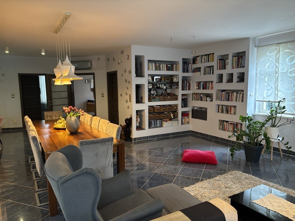 KÉNYELEM, CSEND, NYUGALOM A KERTVÁROSBAN! Tiszaújváros kertvárosi részében eladó 847 nm-es telken, 181 nm nettó alapterületű, földszint + tetőtér beépítésű, jó állapotú, 1+2 szoba + nappali elrendezésű, téglából épült, duplakomfortos családi ház, melyhez 34 nm-es dupla garázs és 18 nm-es pince is tartozik. Telek leírása - udvara füvesített, örökzöld növényzettel beültetett, fúrt kútról működő automata öntözőrendszerrel felszerelt - fedett filagória alatt kültéri konyha, kemence, bográcsozóhely, sparhelt, gázgrill került kiépítésre - kertben található 8 m x 4 m-es medence gépesített, fűthető - kerítése utcafronton kovácsoltvas, szomszédok felől épített fal, elektromosan nyitható kapuval rendelkezik Épület leírása - 1999-ben épült, összközműves ingatlan - alap sávbeton, falazat tégla + 8 cm szigetelés, dryvittal vakolva - födémszerkezete monolit vasbeton, tetőszerkezete fagerendából készült zsindely fedéssel Lakás leírása - 113 nm földszint elrendezése: nappali + konyha + étkező, kamra, fürdő + WC, szélfogó, gardrób, közlekedő - 50 nm tetőtér elrendezése: 1+2 szoba, fürdő + WC, közlekedőt kísérő tükrös gardrób - 18 nm-es pincében szauna került elhelyezésre - 34 nm dupla állásos garázs fűtött, elektromosan nyitható - kényelmes fedett terasza jól élhető, 16 nm nagyságú, dny-i tájolású - hőszigetelt műanyag nyílászárok kerültek beépítésre - hűtő-fűtő klímával felszerelt az emelet minden szobája és a nappali - szobák laminált padlóval, egyéb helyiségek járólappal burkoltak - fűtését kondenzációs gázkazán biztosítja radiátorokon és padlófűtésen keresztül - takarításnál nagy segítség a kiépített központi porszívó Az elmúlt évek során ez az ingatlan folyamatos felújításon esett át. A földszinten megtörtént a fürdő teljes és a konyha részleges felújítása, az egész lakásban új belső ajtók kerültek beépítésre, a világítórendszer korszerűsítve lett, a gázkazánt kondenzációsra cserélték. Kedvező rezsi költséggel fenntartható. Csendes, nyugodt kertvárosi részen épült, mégis könnyen elérhető Spar, termálfürdő, városközpont stb. Szomszédsága nagyon jó. A lakás tartozékát képezi a konyhaszekrény gépekkel, gardróbszekrények és minden, ami beépített. Ez a családi ház kiváló elosztású, mely az alaprajzon megtekinthető. Modern kialakításával kényelmesen élhető, hangulatos otthont biztosít az ott élők számára. Amennyiben szeretné megvásárolni ezt a stílusos családi házat, akkor jöjjön és nézze meg! Vevőink részére szolgáltatásunk ingyenes. Díjmentes hitel ügyintézéssel, lakáskasszával, fix, forint alapú kölcsön ajánlattal, CSOK Plusz ügyintézéssel állunk ügyfeleink rendelkezésére. Advertiser