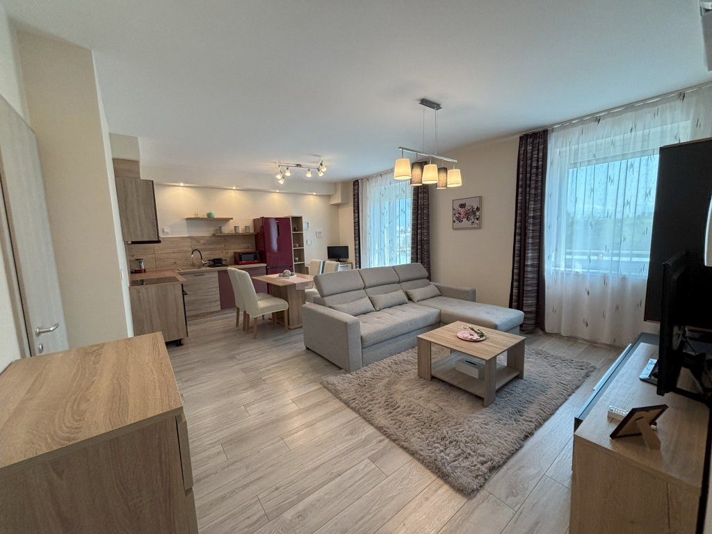 MODERN, ERKÉLYES, IGÉNYES LAKÁS KIADÓ! Tiszaújvárosban a Lévay úton, 2021-ben épült, liftes társasház 5. emeletén kiadó 55 nm alapterületű, amerikai konyhás nappali +1 szoba elrendezésű modern lakás, melyhez 13 nm-es erkély tartozik. A lakás teljes körűen berendezett és felszerelt. A lakás paraméterei: - elrendezése: konyha + nappali + étkező, 1 szoba, fürdő, WC, előszoba, kamra, erkély - újszerű kialakítású, igényes otthon déli tájolású, világos, napfényes helyiségekkel - konyhaszekrénybe elektromos főzőlap, elektromos sütő, páraelszívó, mosogatógép, hűtőszekrény beépítve - kényelmesen élhető erkély, melyről a panoráma gyönyörű - hőszigetelt nyílászárók redőnnyel, rovarhálóval és hangulatos függönnyel felszereltek - klíma beszerelve - új bútorzattal berendezett és minden egyéb kiegészítővel felszerelt helyiségek - igényes fürdőszobában a mosó és szárítógép is helyet kapott - külön WC-vel rendelkezik - kamra praktikus tárolást biztosít - bejárati ajtó két zár szerkezetes, biztonsági ajtó - rendkívül alacsony rezsi költséggel fenntartható, víz, villany, fűtés fogyasztás mérhető A bérleti díj magába foglalja az autóbeállóhely parkolási lehetőségét is. Így a parkolás kényelmesen és biztonságosan megoldható a társasház zárt udvarán. A lakást jelenleg nem lakják, akár azonnal költözhető ez a stílusosan kialakított otthon. A társasház a Lévay út elején épült a LIDL szomszédságában. Kimondottan jó infrastruktúrával rendelkezik. A társasház földszintjén különböző üzletek kerültek kialakításra. Igényes, modern külső megjelenésével beilleszkedik a kertvárosi övezetbe. A társasház 2021-ben épült, falazata tégla, mely 15 cm-es hőszigetelést kapott. A fűtés és melegvíz szolgáltatást korszerű hőszivattyú és napelem rendszer biztosítja. • A modern, tágas lift is a lakók kényelmét szolgálja. Kiadási feltételek: • hosszú távra kiadó • 2 havi kaució + 1 havi bérleti díj a bérleti szerződés aláírásakor • havi költség: 250.000 Ft/hó bérleti díj + rezsi Amennyiben felkeltettem az érdeklődését jöjjön és nézze meg a lakást! Bérlőink részére szolgáltatásunk díjmentes, a bérbeadás teljes körű lebonyolítását segítjük! Advertiser