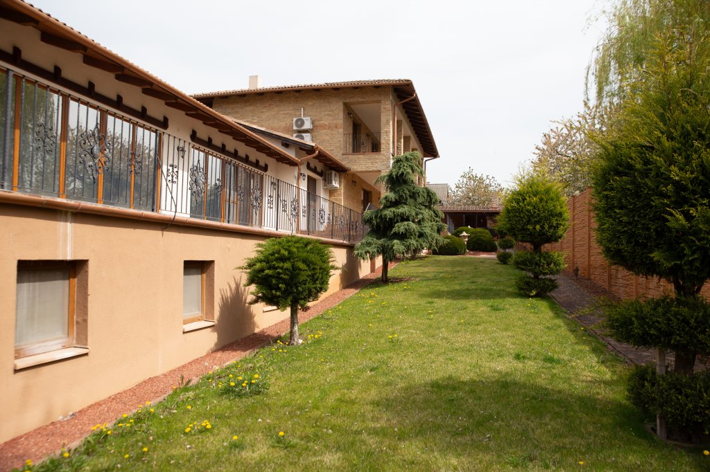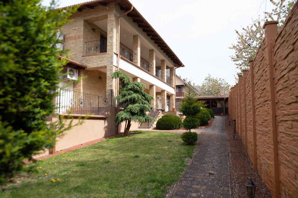 Csendes utca gyér forgalommal, körbejárható háromszintes, mediterrán stílusú ház saját kerttel, kétállásos garázzsal, wellness-részleggel, borospincével, kemencével, tágas terekkel! Győr északi részén, csendes környéken, az európai szintű infrastruktúrával ellátott Szitásdombon egy olyan elegáns, nagypolgári élettér került kialakításra, amely a klasszikus családi ház jelleget kibővítve a családi, baráti és társasági eseményeknek is teret ad, az üzleti partnerek felé reprezentál, akár tárgyalásoknak is nyugodt helyet biztosít, miközben egyben marasztal is, megteremtve az ideális otthon-munkahely együttes harmóniáját! 1.725 m2-es, enyhén lejtős saroktelek, a főépület 330 m2, a teraszok összesen 240 m2, pince és konditerem 105 m2, garázs 36 m2, külső nyári konyha és borospince 24+23 m2, külső stúdió-lakrész további 15 m2. A teljes beépített hasznos alapterület 776 m2, ami nettó 528 m2. A főépület belső, kétszintes lakótere önállóan 330 m2. Az első szinten, egy légtérben található a nagy nappali és konyha az étkezővel, teraszkapcsolattal, valamint innen nyílik a dolgozószoba, szemben vele egy tágas fürdőszoba. Tovább lépve csekély szintkülönbséggel érhető el a wellness-részleg, ugyancsak teraszkapcsolattal. Az emeleten van három szoba, fürdőszoba, beépített szekrények. Minden szoba D-DK-i tájolású, és minden szobából kiléphetünk a 30 m2-es fedett erkélyre. - Extrák: belsőépítész által tervezett enteriőr, belső, feszített víztükrű, fűthető medence, nagy teljesítményű párátlanító, süllyesztett jakuzzi, szauna, külön mosókonyha, vendégmosdó, minden helyiség légkondicionált. Az alsó szinten kialakított, teljesen felszerelt konditerem. - Központi padló-, és falfűtés kondenzációs gázkazánnal, épített, stílusos cserépkályha, vákuumcsöves napkollektor, többzónás riasztó-, és kamerarendszer. - Parkosított, térkövezett, kertész által rendszeresen gondozott telek. Automata locsolórendszer, átgondolt esővíz-elvezetés. - Külső, fedett, faépítésű 10 fős vendégváró, épített kerti sütő - kemence. - Külső, hátsó, teraszos nyári konyha és hangulatos, ugyancsak 10 fős borospince. - Külső kis lakrész, teljesen felszerelt stúdió a hátsó kapunál karbantartónak, akárkinek alkalmi szállásként. Az ingatlan jelenleg cégtulajdonban van, így a meghirdetett vételár áfás ár, további egyeztetést igényel. A teljes cég megvásárlása esetén az átvétel áfa-mentes, az ár módosul! Ha egy modern és tágas, világos, szép otthont szeretne, melyet öröm belakni, öröm a társasági életének helyet adni, és amit az idetelepített irodája okán munka miatt a hétköznapokban sem, a wellness lehetőségek okán még a hétvégén sem szükséges elhagyni, akkor ez az a ház, ami mindezeknek megfelel! Érdeklődése esetén állunk rendelkezésére! A tulajdonosok kérését tiszteletben tartva az ingatlan személyes megtekintése előtt szükséges egyeztetnünk, ezt követően tudunk bővebb felvilágosítást adni, további képeket mutatni. Advertiser