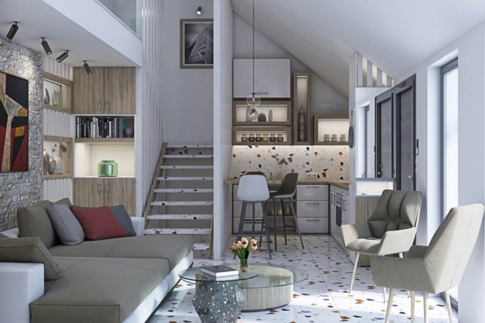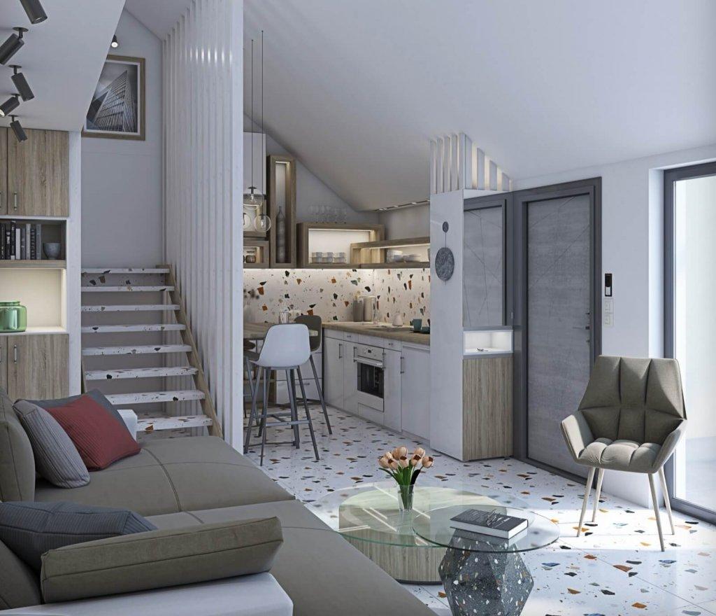 Belső kétszintes lakások, nagy tetőteraszok, okos-otthonok.