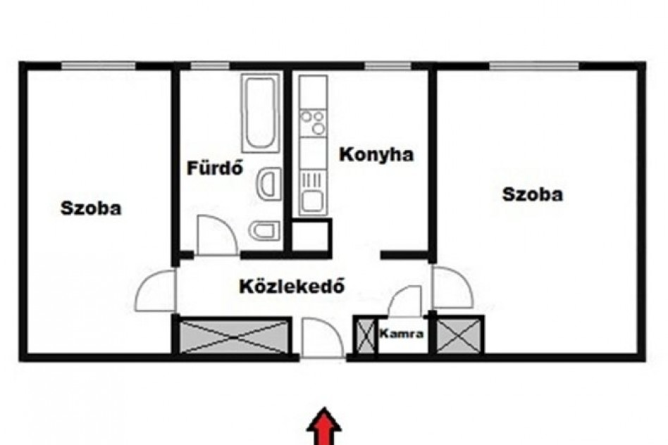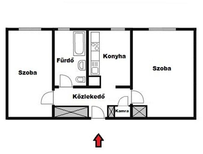 - elosztása: 2 külön nyíló szoba, konyha, kamra, közlekedő, fürdő + WC