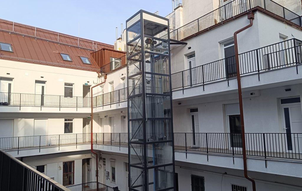 A VI. kerületben található klasszikus épület teljes körű felújítása során kerültek kialakításra új lakások a második és harmadik emeleten, hozzájuk vadonatúj panorámalifttel az udvarban.