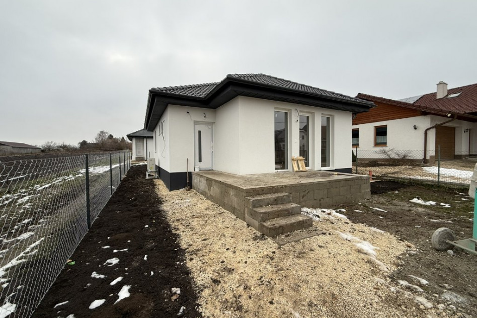 3 szoba + nappali: nettó 90,5 m2 + 12 m2-es terasz, kert 400 m2. Ára: 85 millió Ft