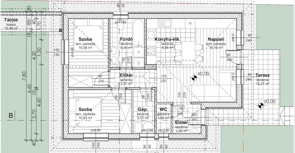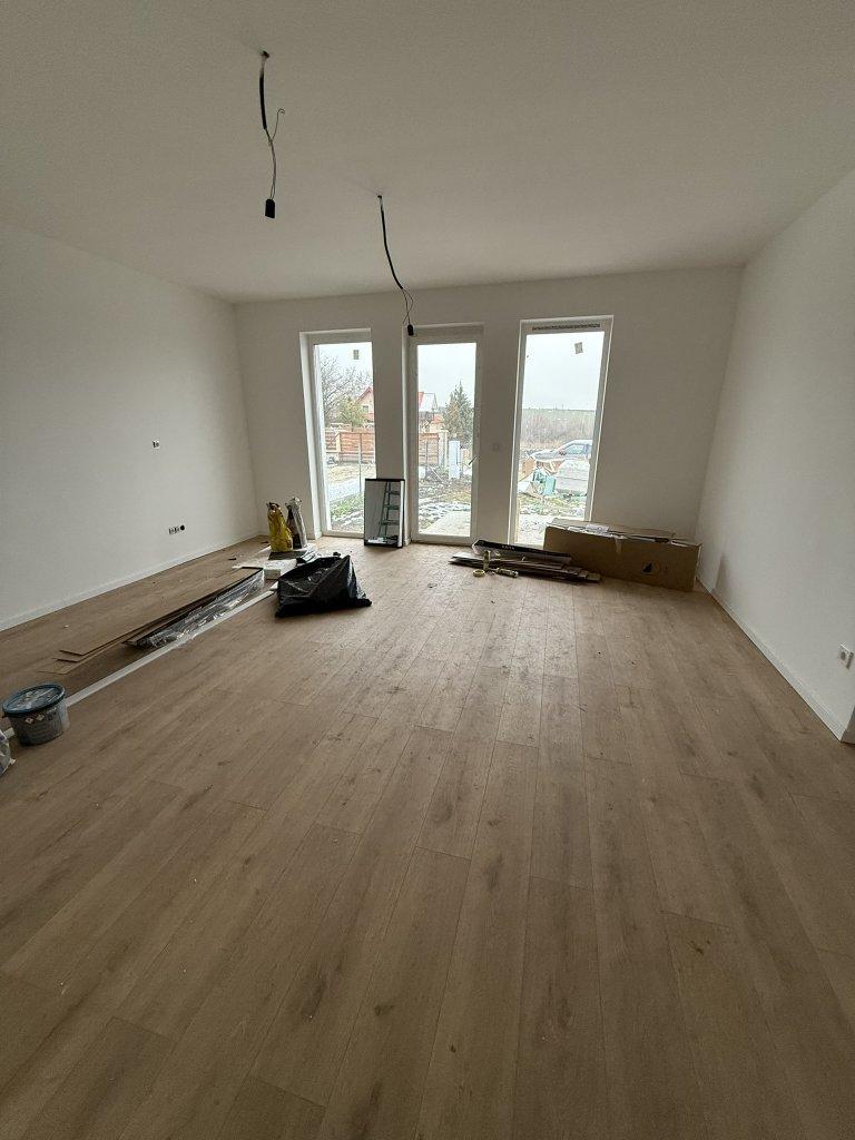 2 szoba + nappali: nettó 64,5 m2 + 12 m2 terasz, kert 400 m2. Ára: 62 millió Ft