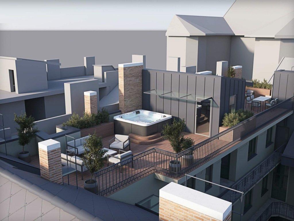 Klasszikus épület, melynek teljes körű felújítása során, a legfelső szinten, a padlástéren 4 modern, tetőteraszos okos otthon kerül kialakításra.