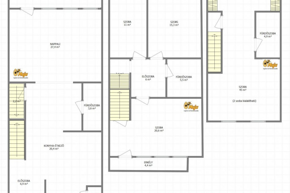 • Területek: Mindkét szinten 2-2 terasz tartozik a lakáshoz