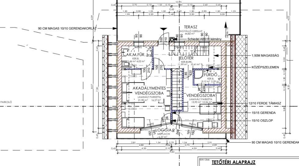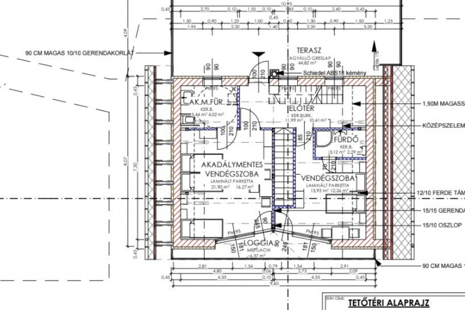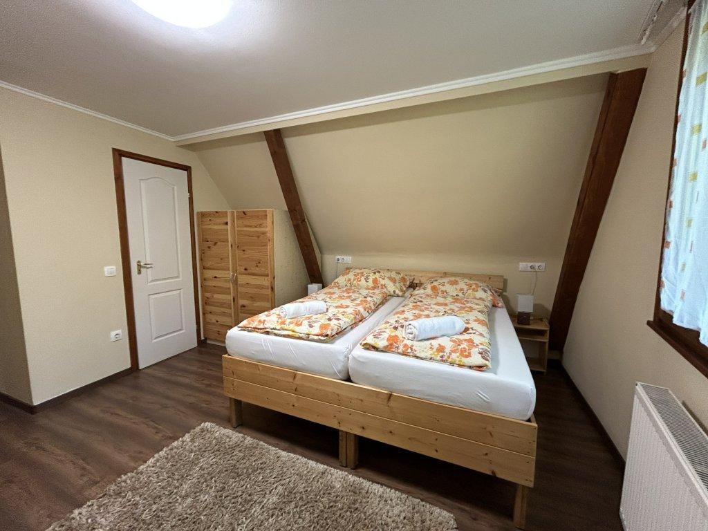 A vendégház háromszintes kialakítású: földszinti, tetőtéri és beépített padlástéri résszel rendelkezik, mindhárom szint vendégek fogadására, elszállásolására alkalmas. Az épületben összesen 4 szoba található, mindegyikhez saját fürdőszoba tartozik, a teljes kapacitás 13 fő elszállásolására alkalmas. Emellett rendelkezésre áll olyan szoba és mellékhelyiség is, amely akadálymentes kialakítású, így a mozgáskorlátozott vendégek számára is biztosított a kényelmes használat. A kialakítás kényelmes, jól elkülönülő életteret biztosít, így az ingatlan egyszerre szolgálhat vállalkozási és lakhatási célokat, de akár teljes egészében magánhasználatra is ideális.