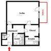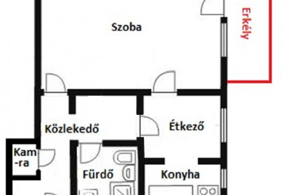 - 1 szoba, konyha, étkező, fürdő + WC, közlekedő, kamra, erkély elrendezésű