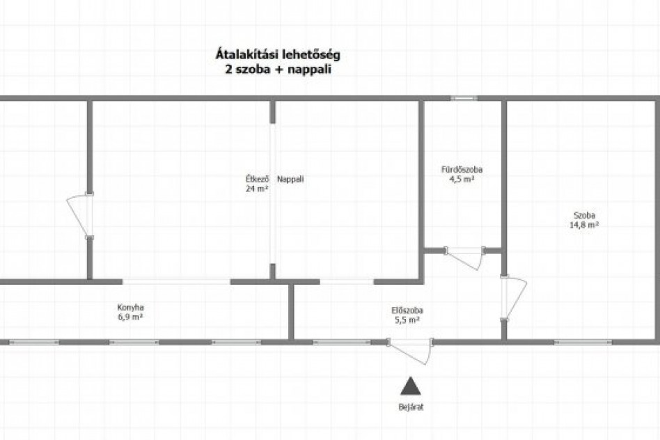 - 63 m2-es 2 szobás, 2 fürdőszobás;