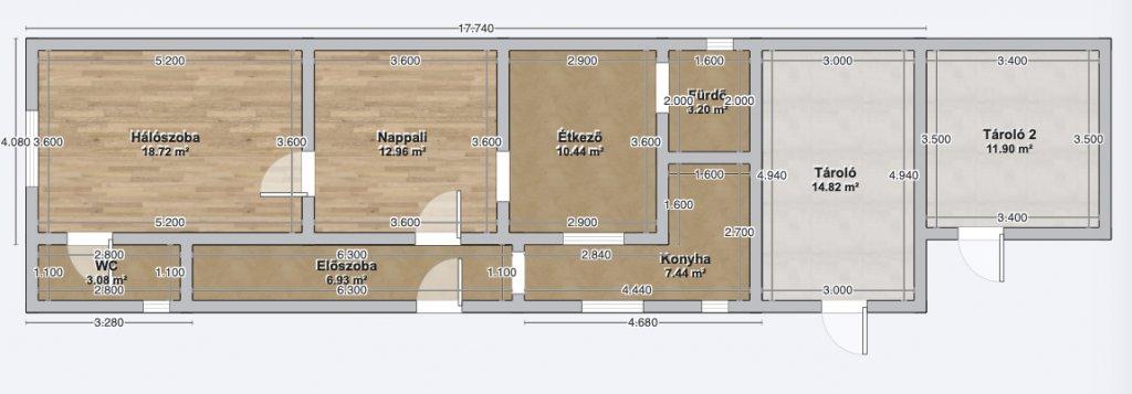 - ház folytatásában tárolók 15 és 12 m2-es;