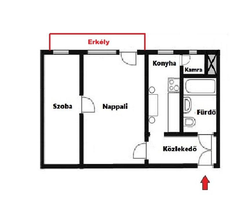 - elosztása: 2 szoba, konyha, kamra, fürdő, közlekedő, erkély