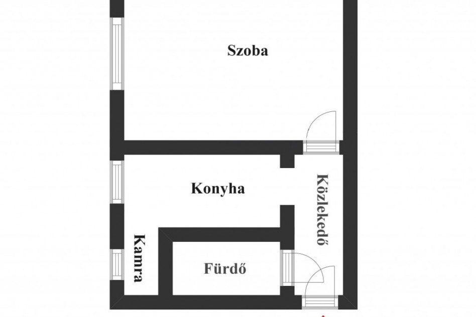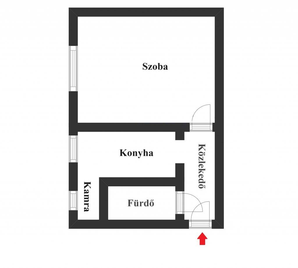 - szoba, konyha, kamra, fürdő + WC, közlekedő helyiségekből áll