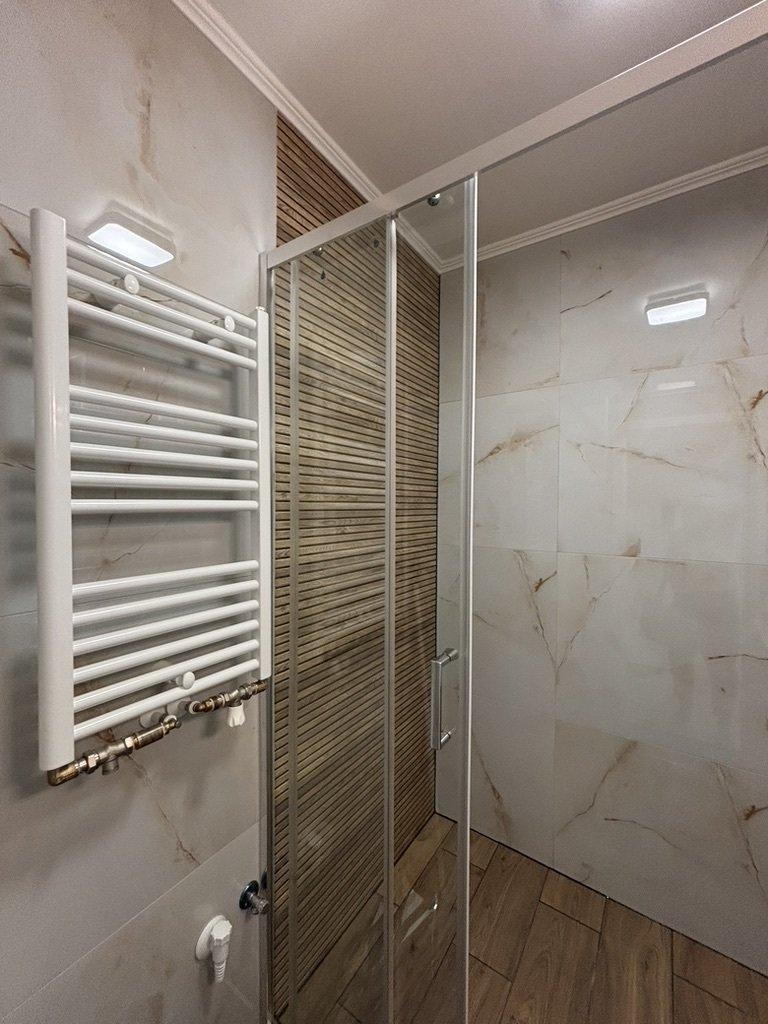 - fürdőben nagyméretű zuhanykabin biztosítja a kényelmet