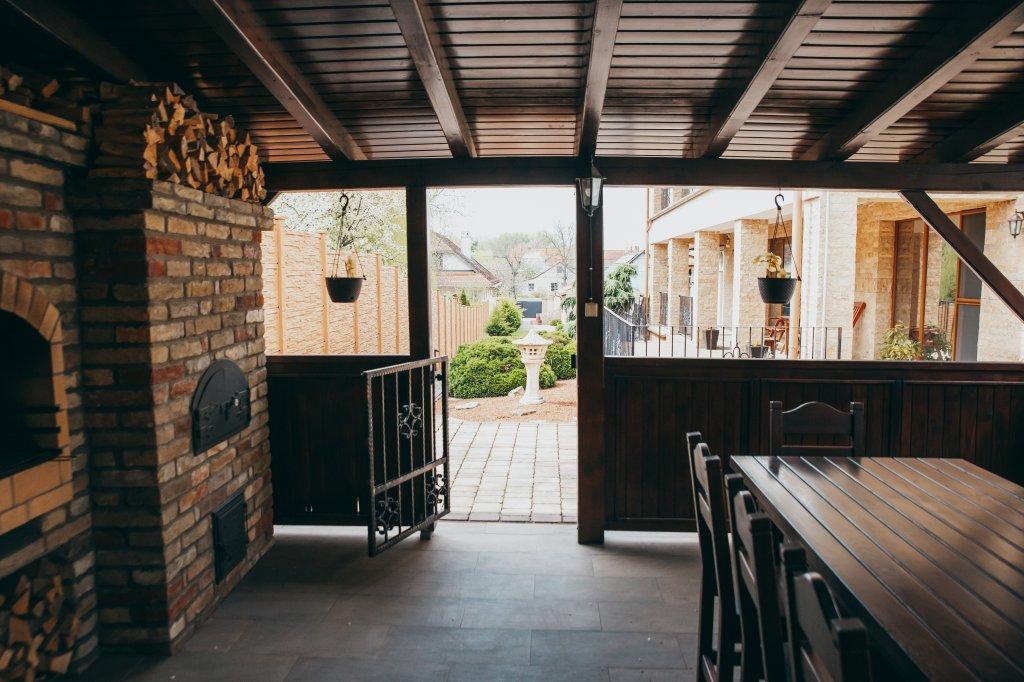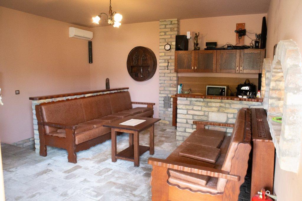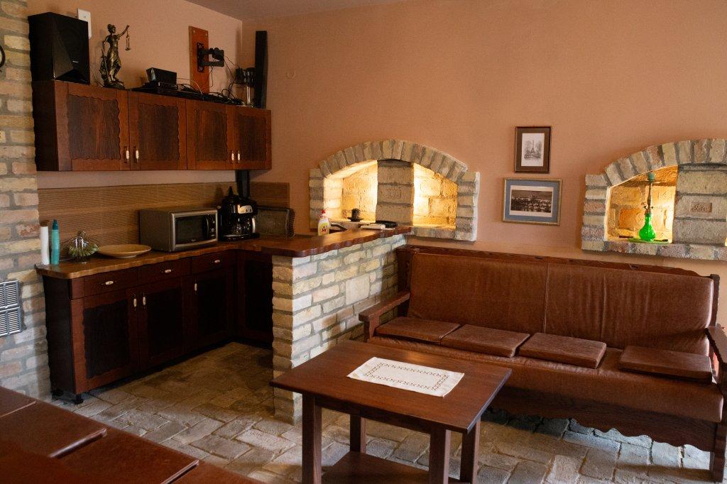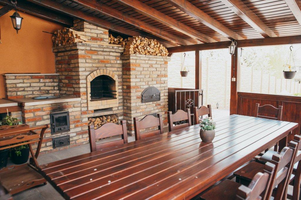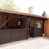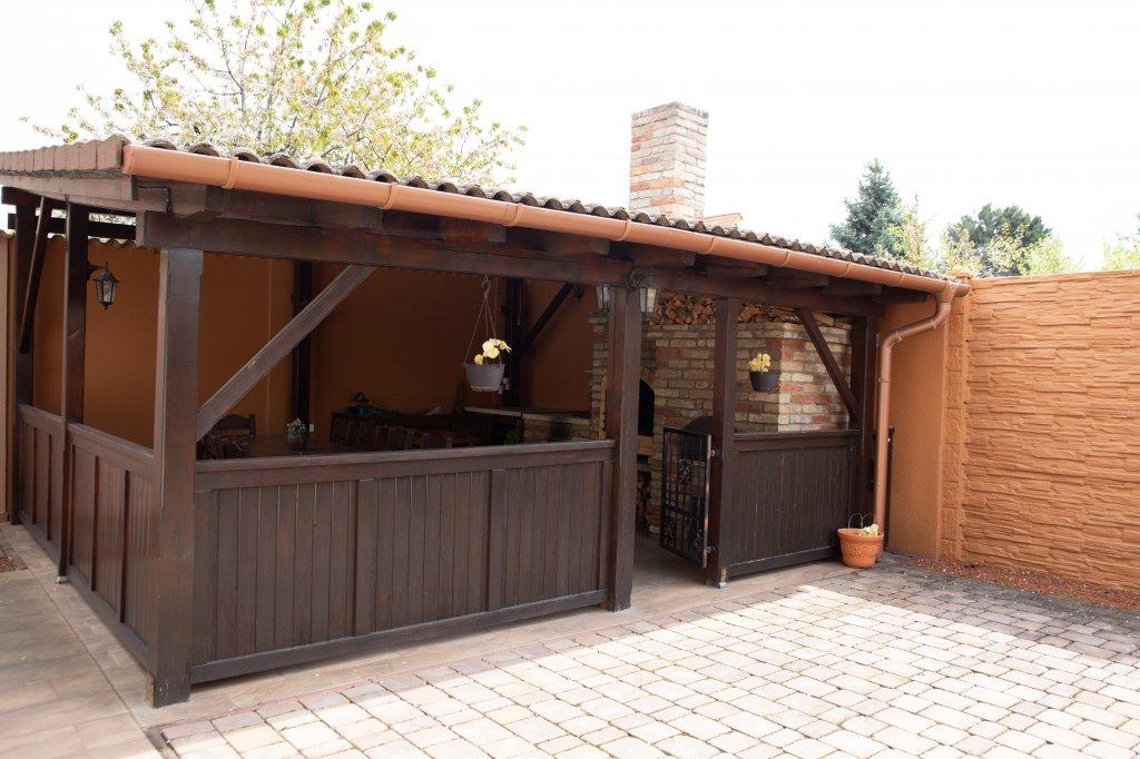 - Külső, fedett, faépítésű 10 fős vendégváró, épített kerti sütő - kemence.