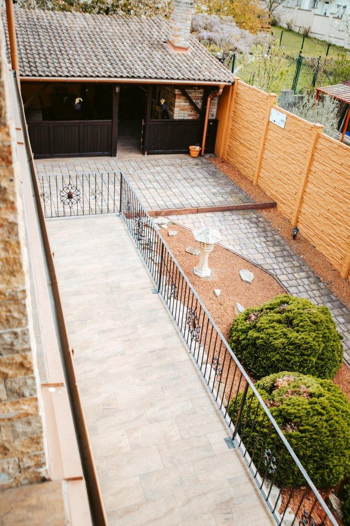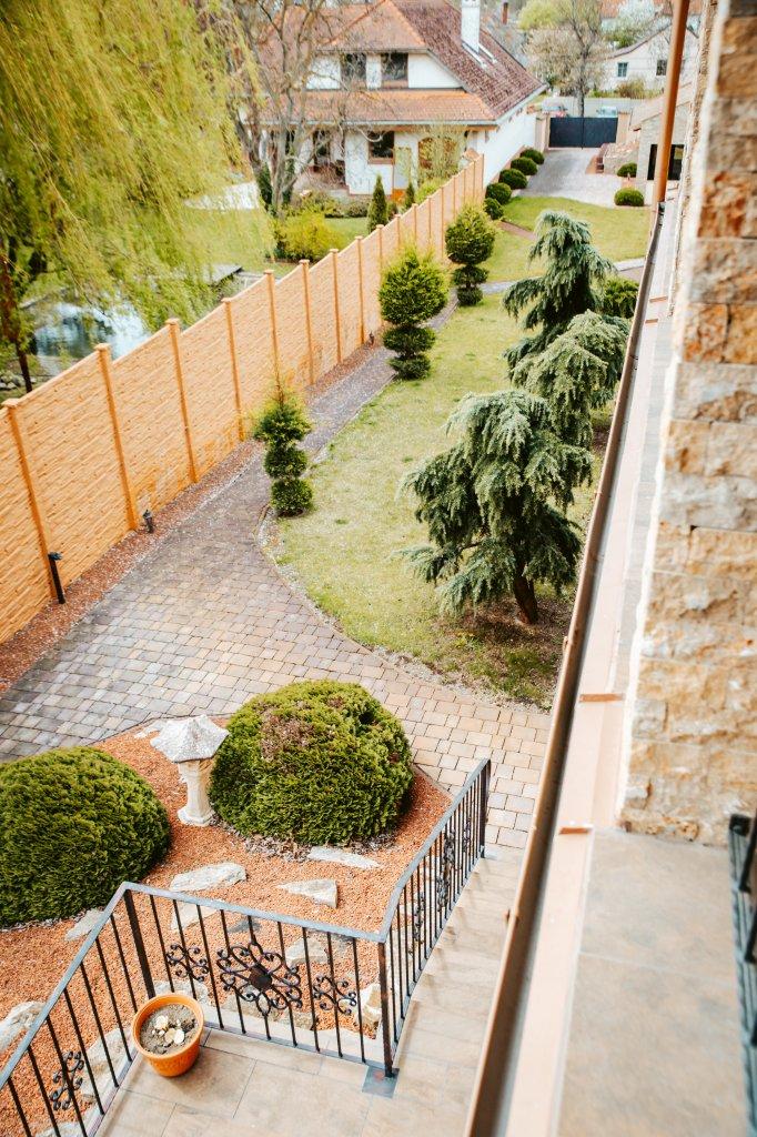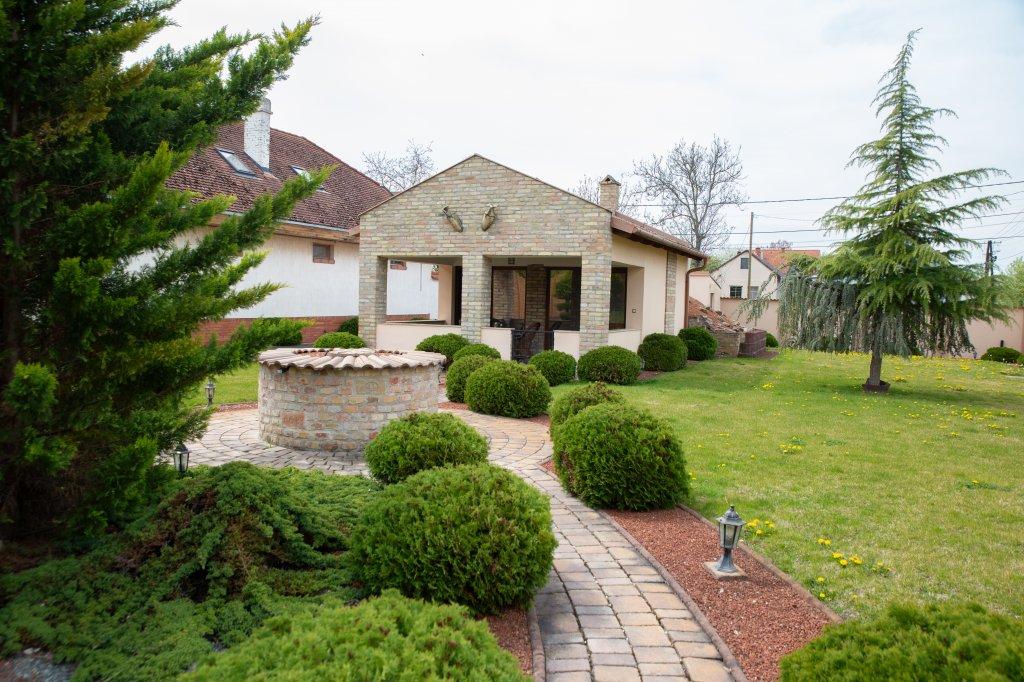 - Parkosított, térkövezett, kertész által rendszeresen gondozott telek. Automata locsolórendszer, átgondolt esővíz-elvezetés.