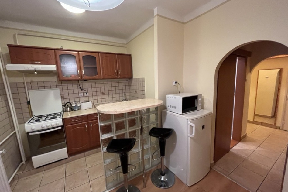Tiszaújvárosban az Építők útján kiadó 3. emeleti, 41 nm alapterületű, 1 szoba + konyha + étkező elrendezésű, erkélyes, teljes körűen berendezett lakás.